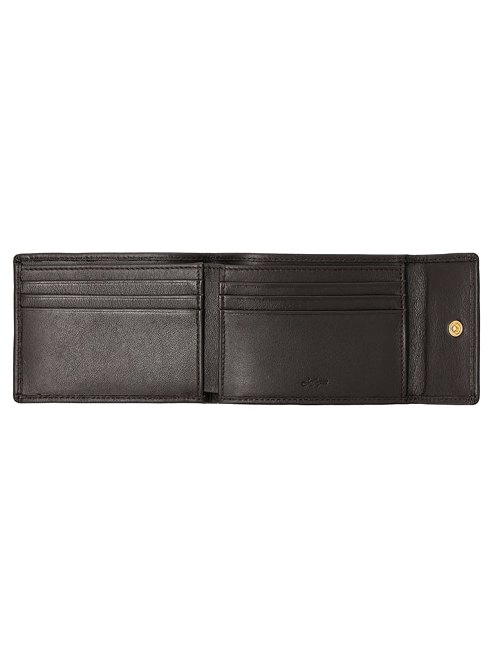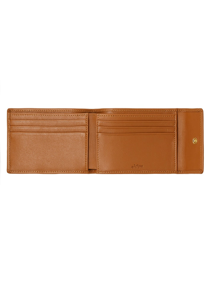 The Copenhagen wallet offers a well-organized interior with ample space for cards and cash, secured by a stylish button closure