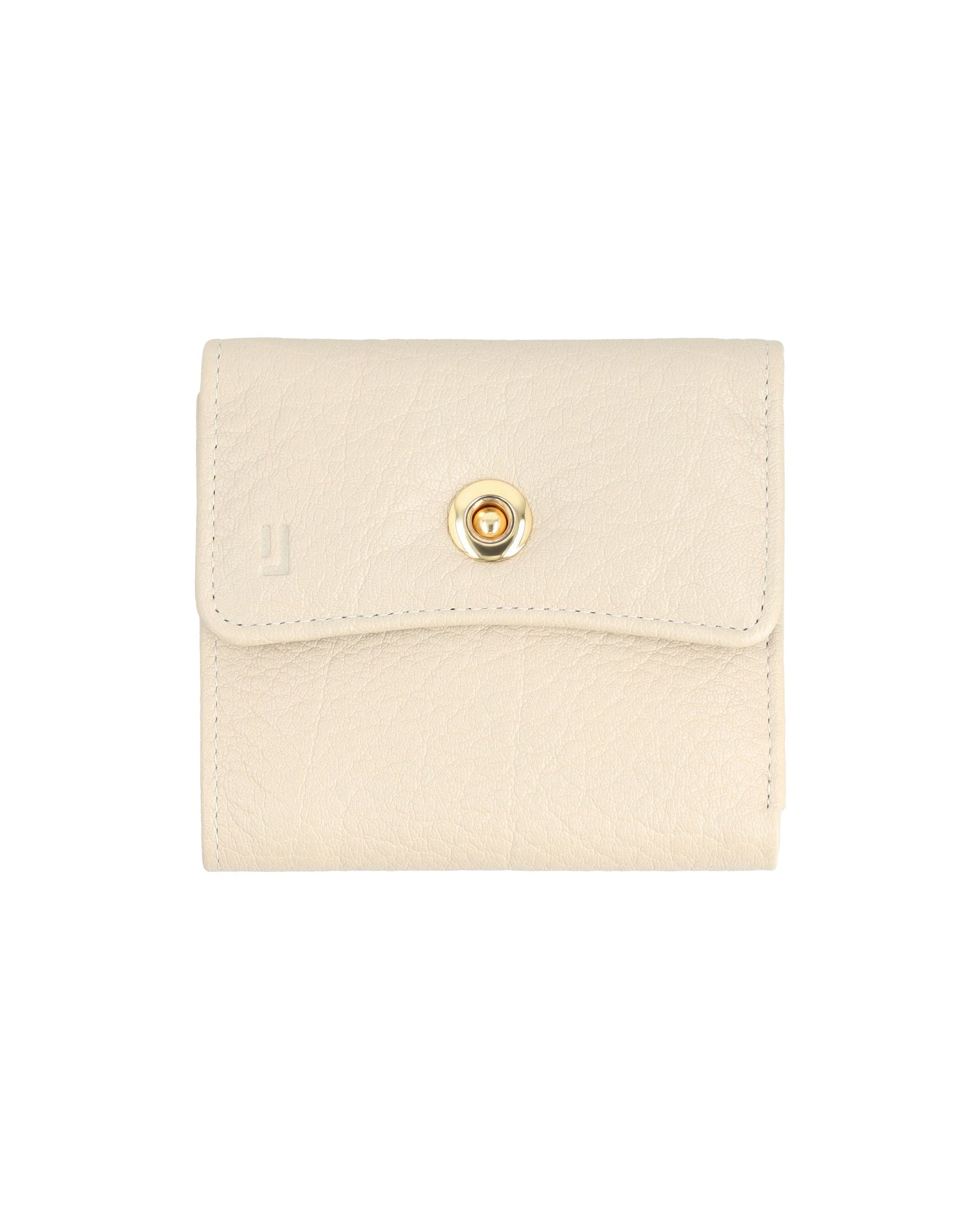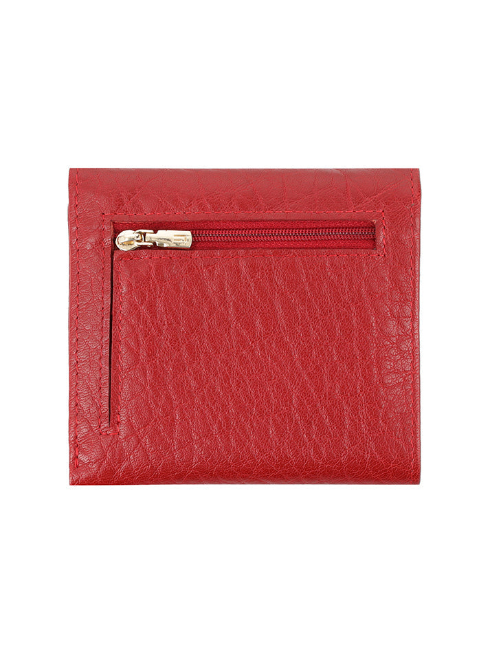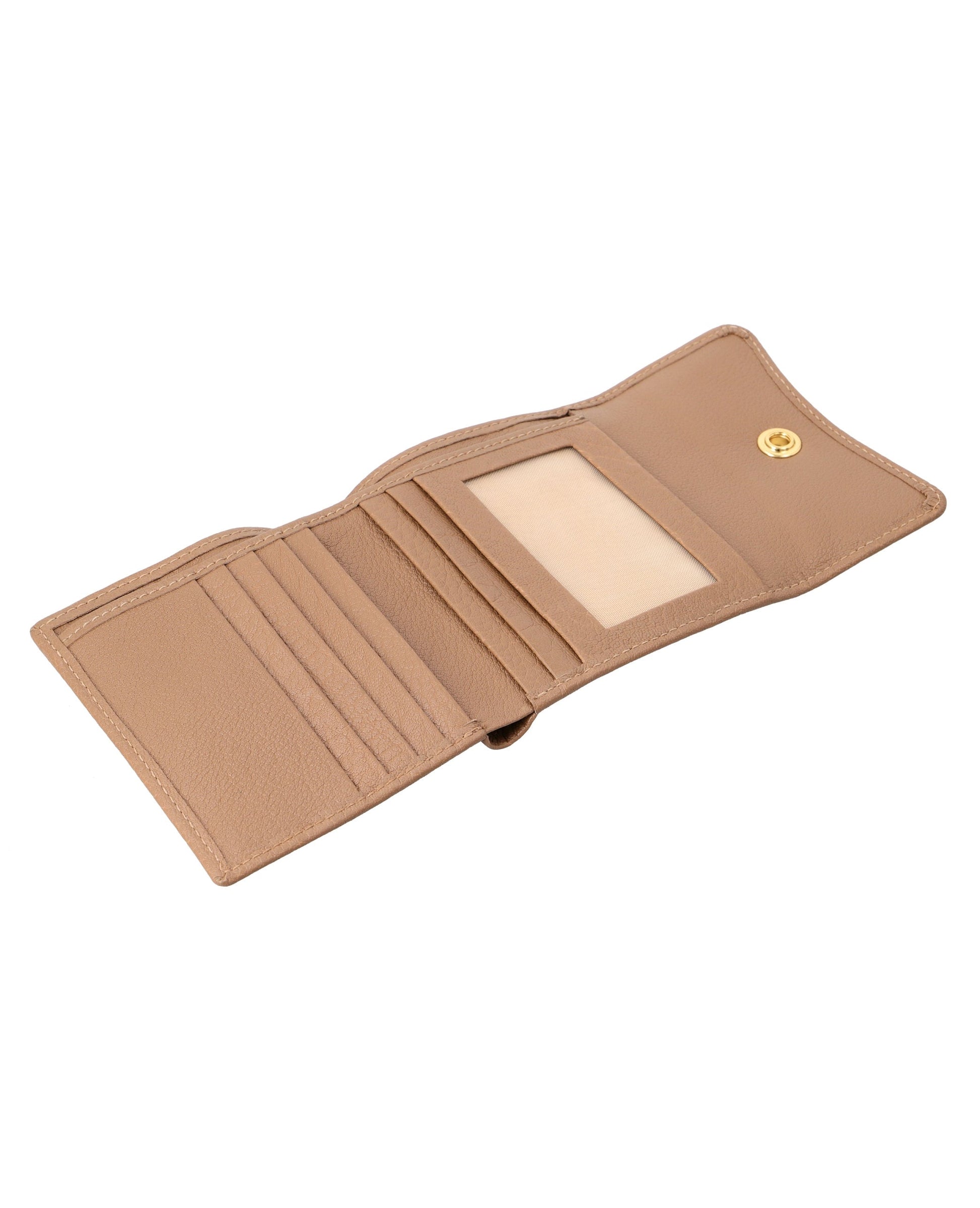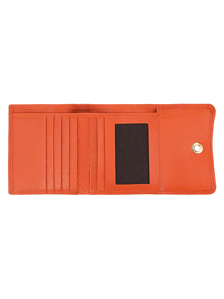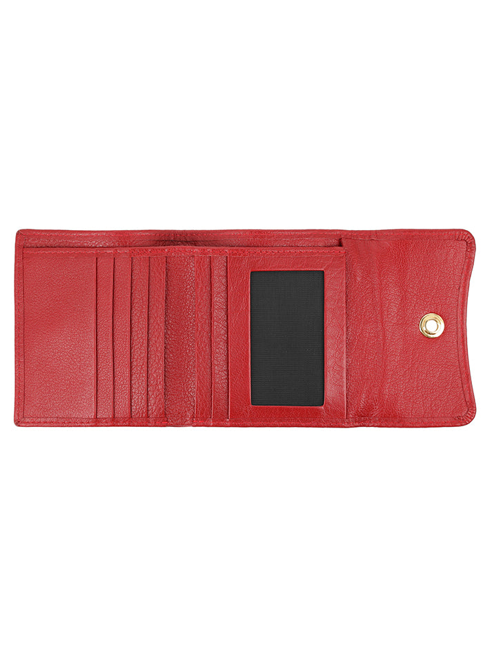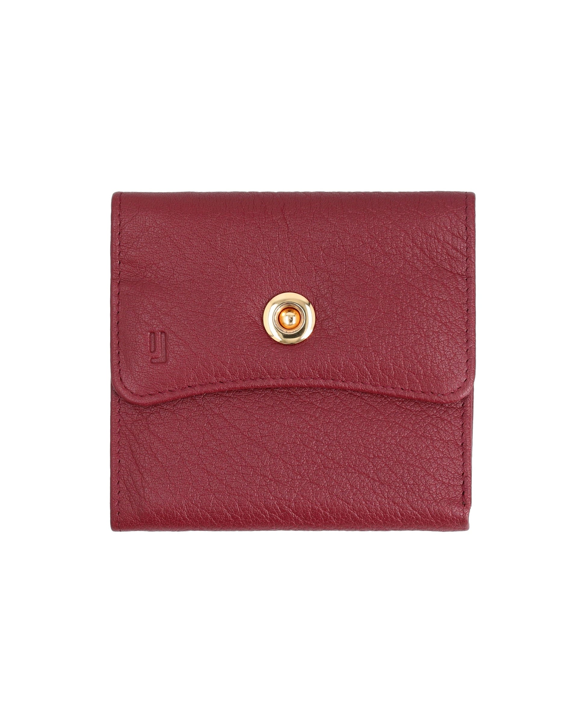 Sleek, small leather wallet with snap closure offers easy access to essentials and keeps cards organized.