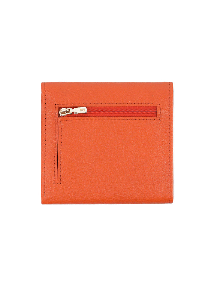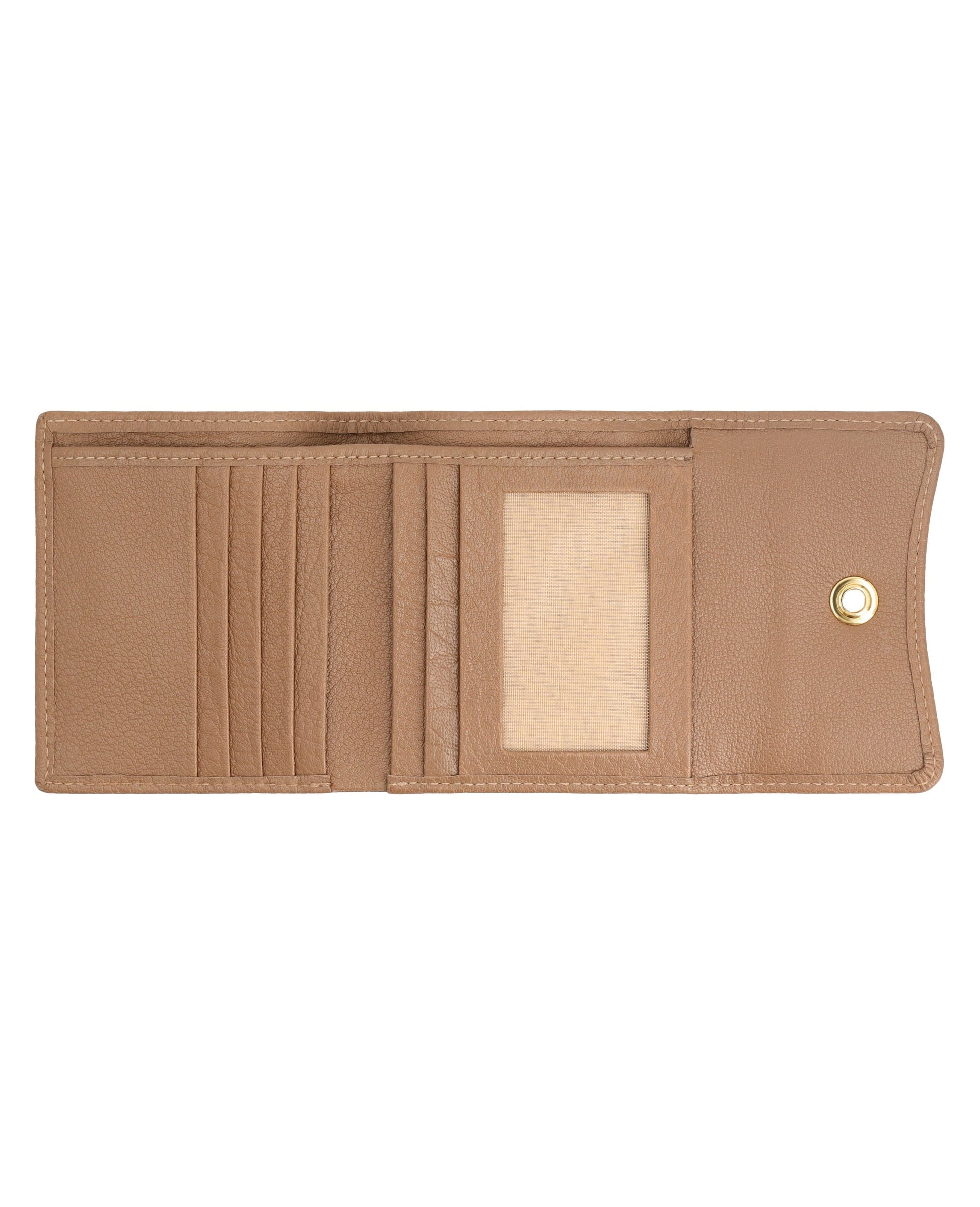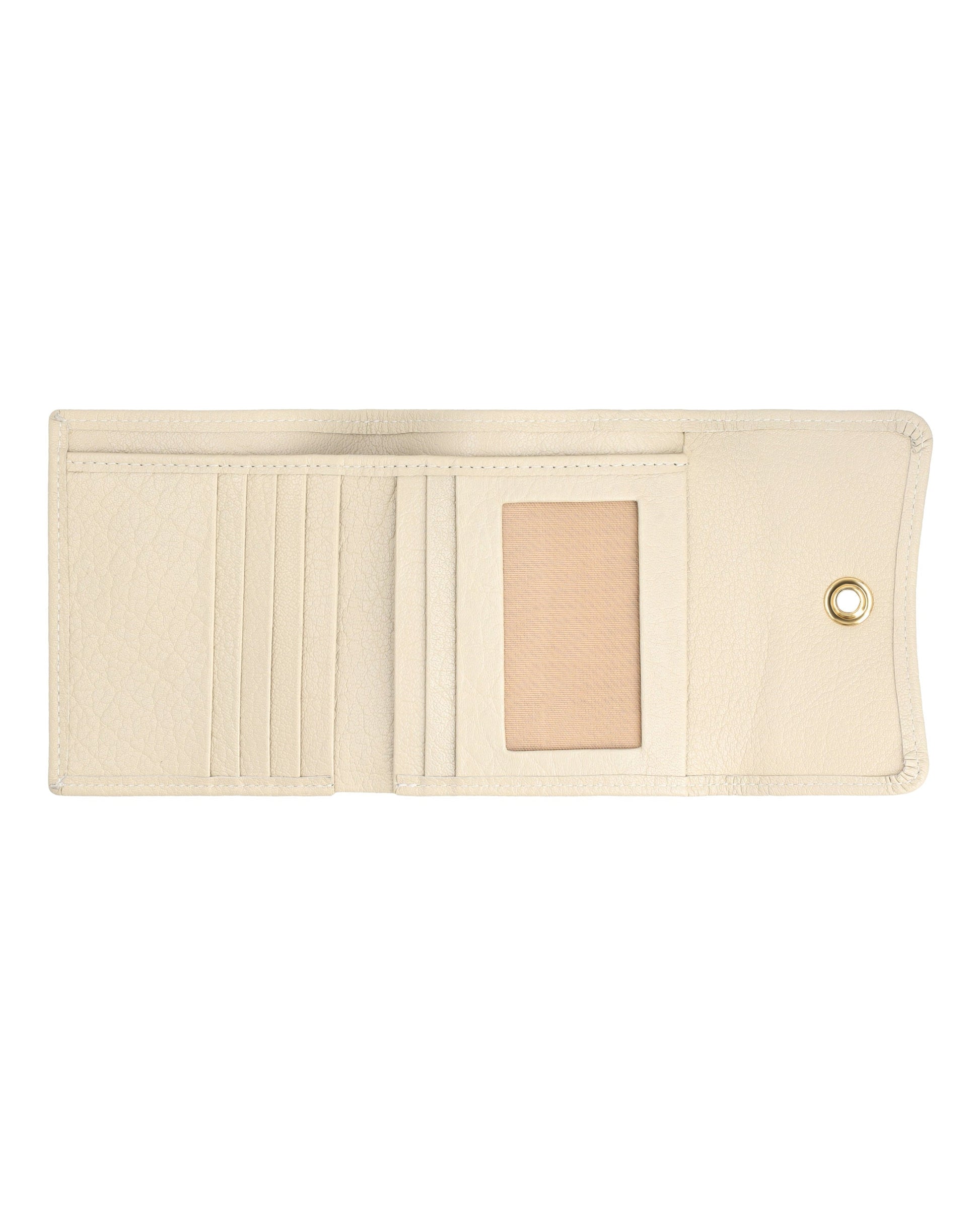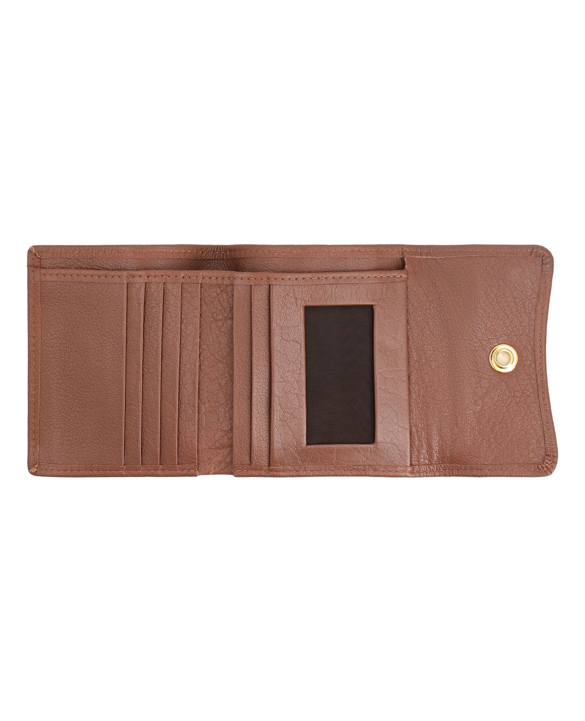 Sleek, small leather wallet with snap closure offers easy access to essentials and keeps cards organized.