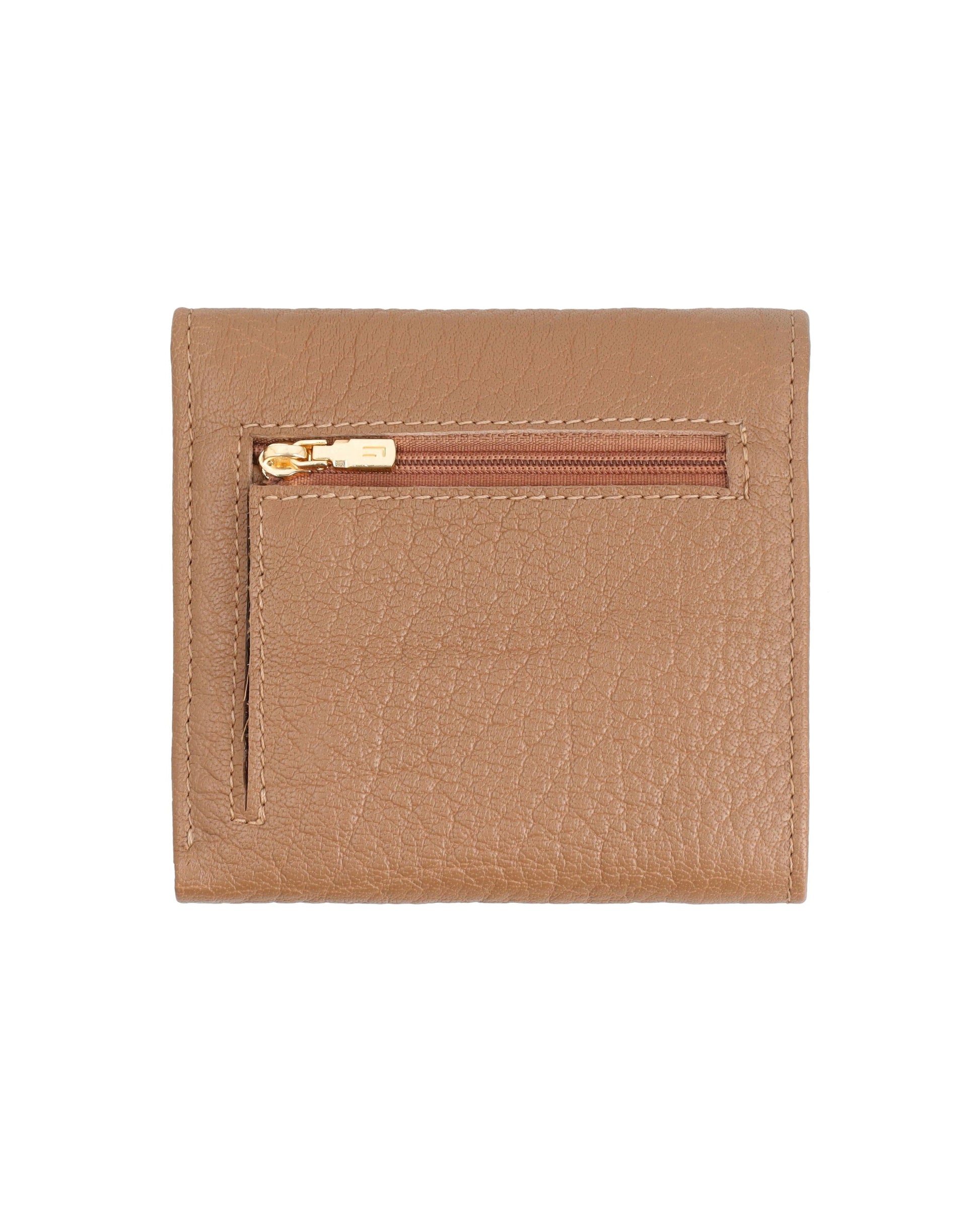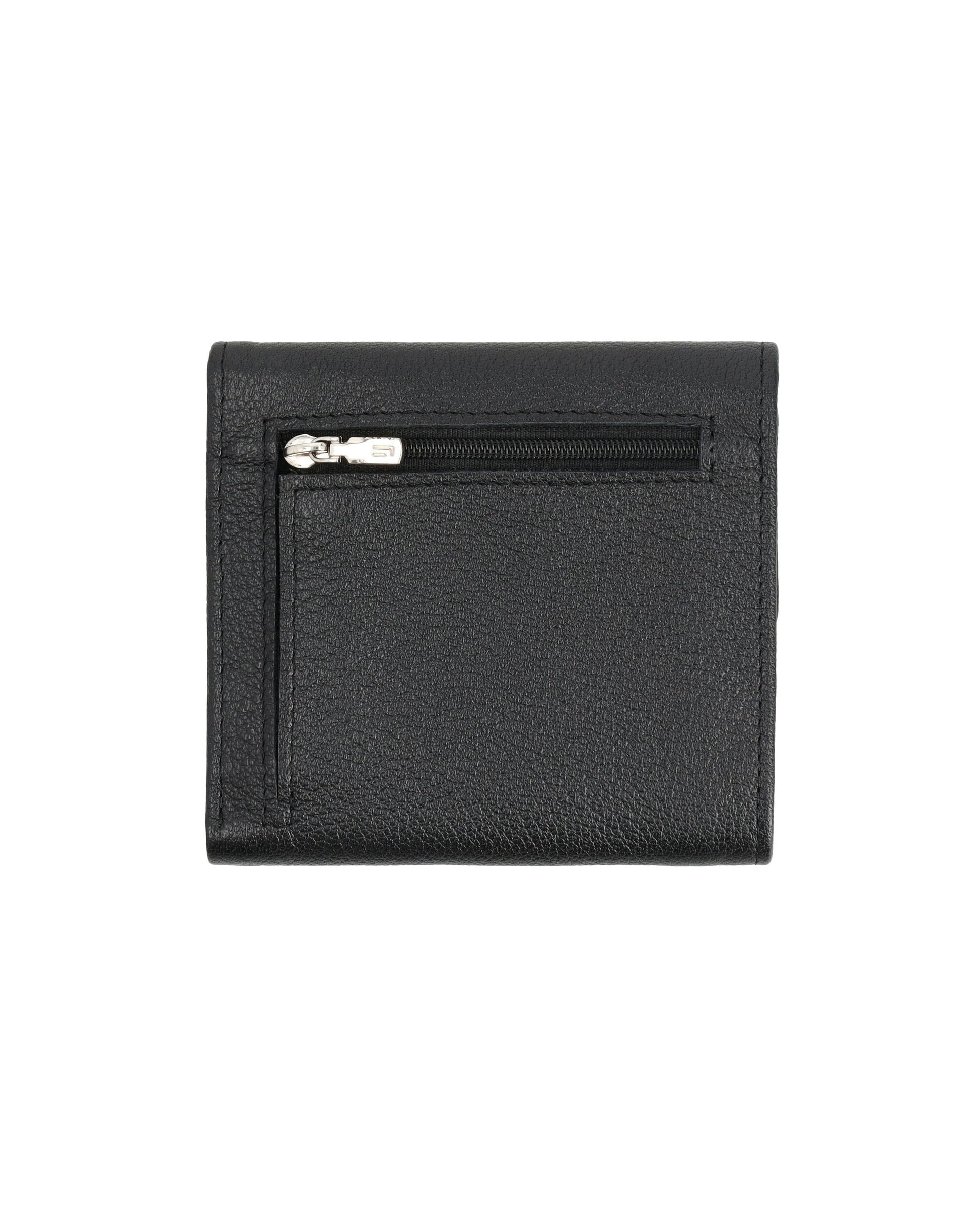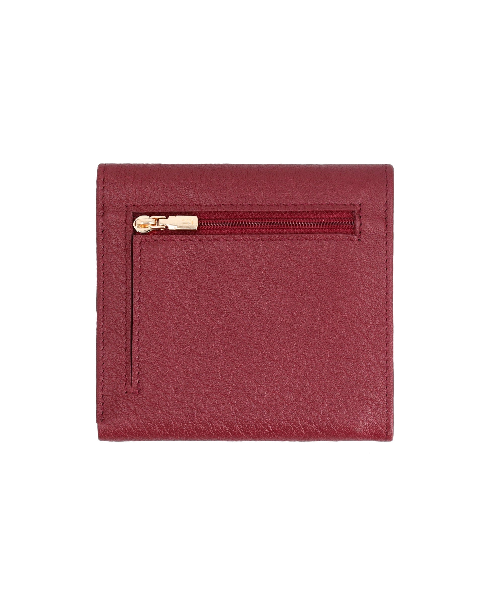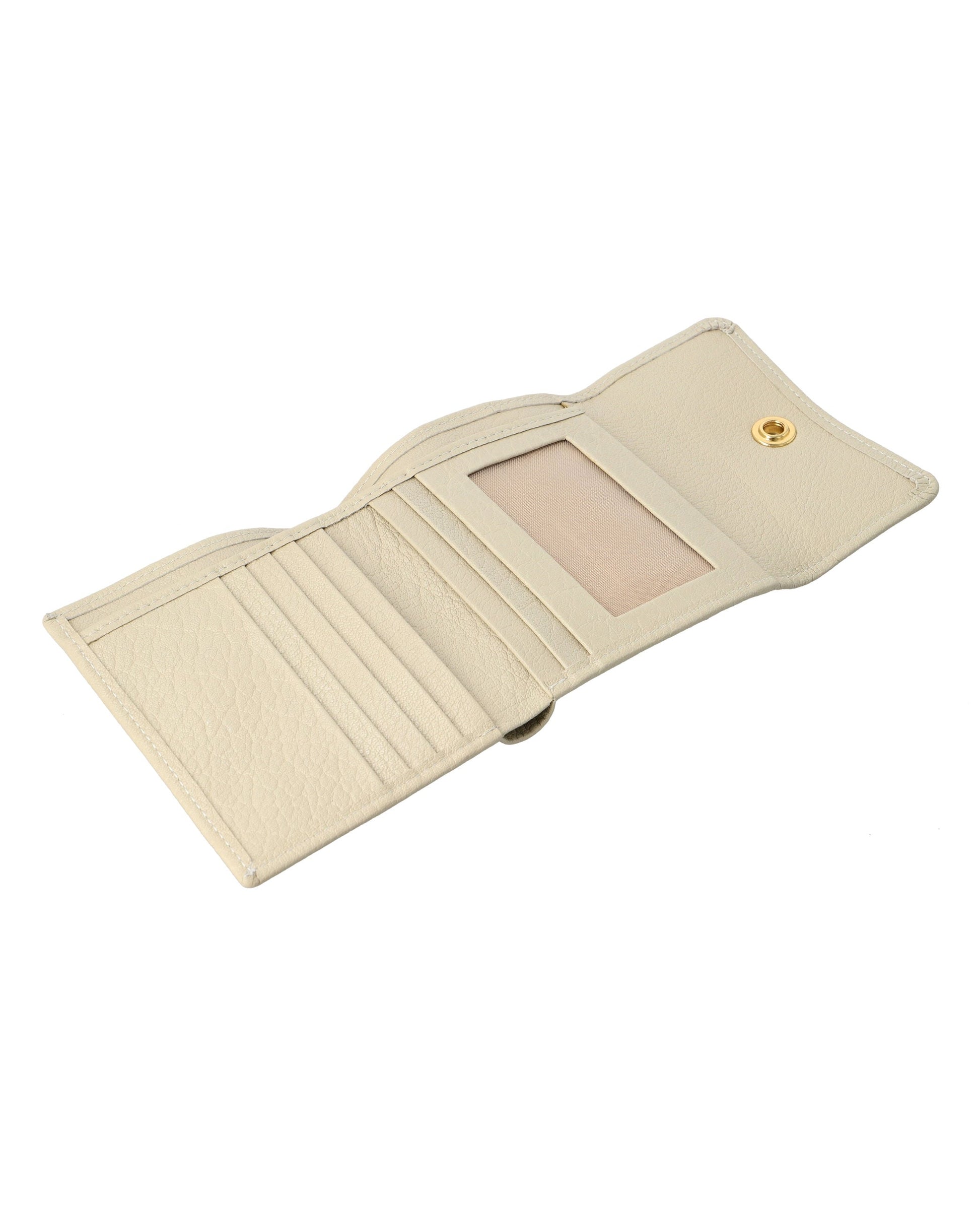 Sleek, small leather wallet with snap closure offers easy access to essentials and keeps cards organized.