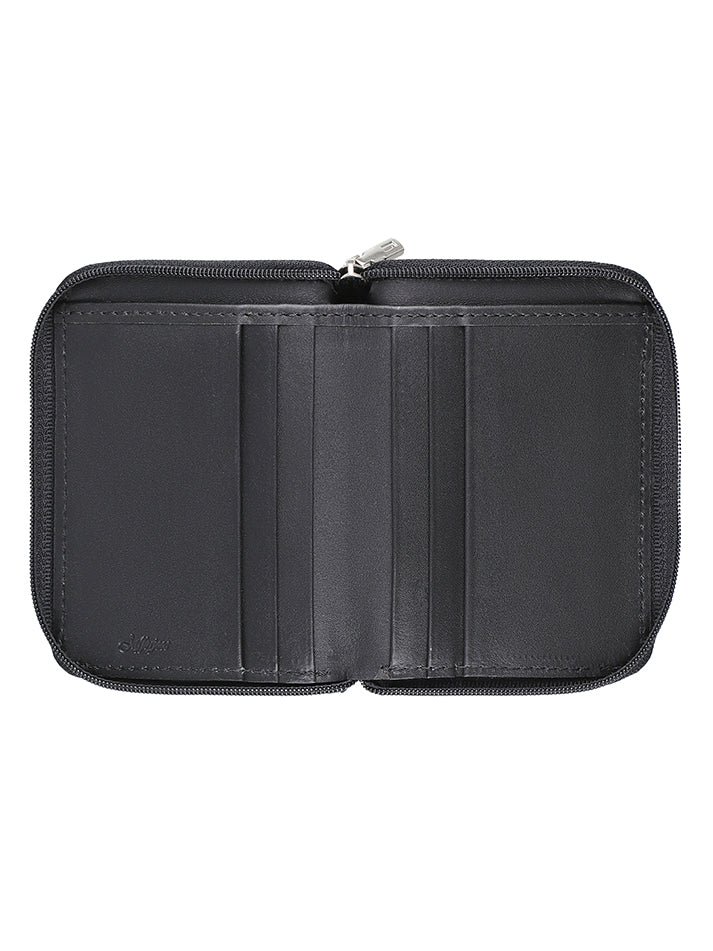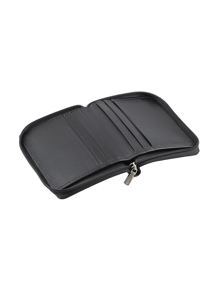 A sleek and secure wallet with a zippered closure, designed to hold your essentials.
