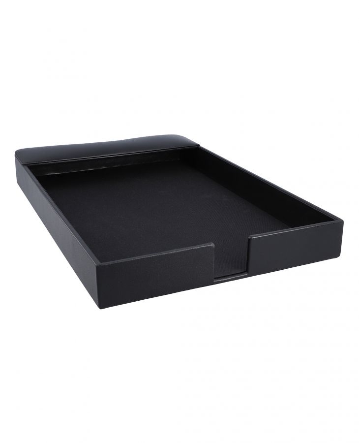 No more cluttered documents with this sleek leather in/out box tray, an essential addition to every executive desk.