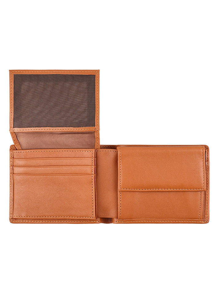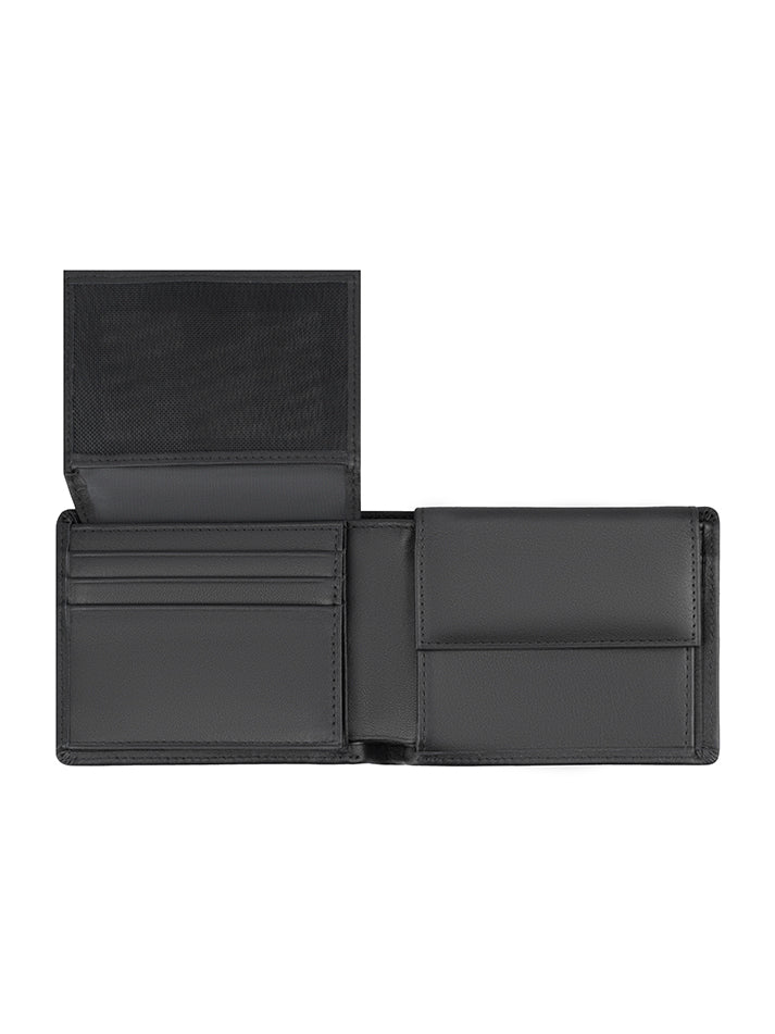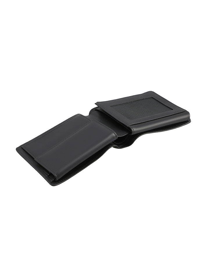 This wallet keeps you organized in style. The-window flap showcases your ID, while the metallic logo adds a touch of class.