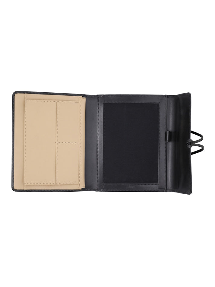 Designed for professionals on the go, this leather portfolio effortlessly combines style and function. Its spacious interior accommodates a tablet, making it perfect for organizing essentials.