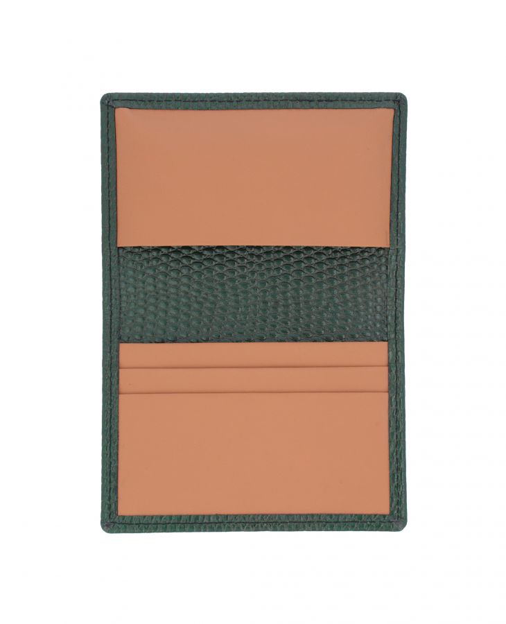 The Shanghai card case is handcrafted in lizard print leather which makes it stand apart from all others. For those who want glitz with style.