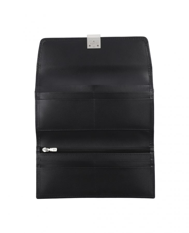 Simple, elegant with just a bit of bling from the metal button, this is the ideal daily wallet. Its spacious enough for all your essential yet small enough to fit in most handbags. This wallet is made in Buffalo leather and available in three classic colors.