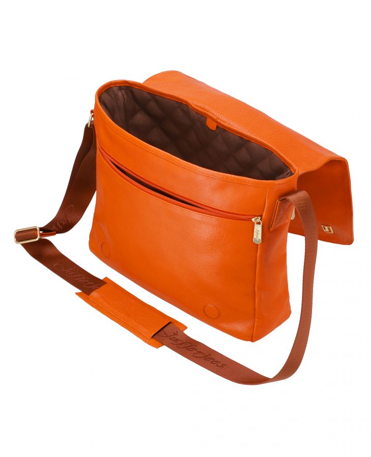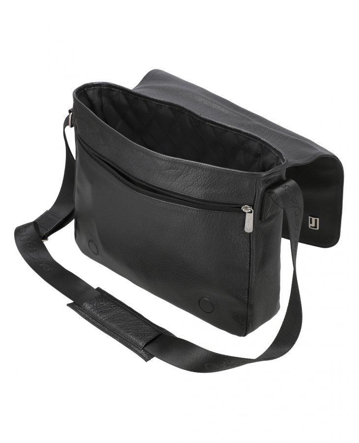 • Full length zipper section under the flap with open pockets inside.