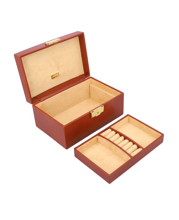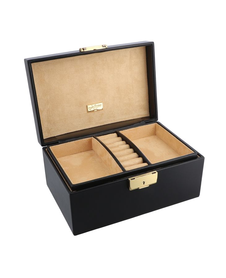 Keep your jewelry safe and secure, in style. The impressive design of this two-layered box is spacious enough to hold a large collection, keeping things organized yet accessible.